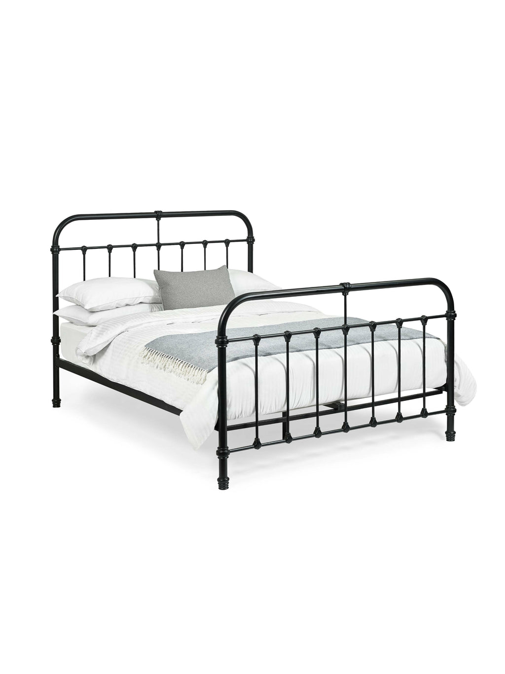 Add a touch of timeless elegance to your bedroom with this 150cm black satin metal bed. Crafted with a beautifully detailed metal frame, it effortlessly combines vintage charm with a sleek, modern design. The sturdy construction ensures lasting durability, while the smooth black satin finish enhances its classic appeal. Designed for both style and support, this bed is the perfect statement piece for those who appreciate the blend of traditional and contemporary design. Full assembly required. Mattress sold separately.
