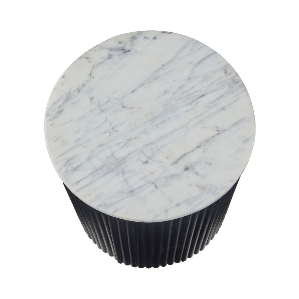 The constrasting solid real marble top makes the unit eye catching, hygeinic & incorporates a modern twist to any interior.A push on the seemlesly integrated doors reveals a solid mango shelf giving the user plenty of storage space. Every Unit has been fitted with soft -closing doors.The solid mango flutes are delicately hand sanded before being hand stained to create a smooth streamline finish.