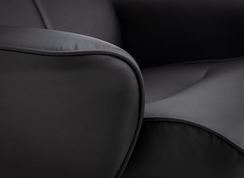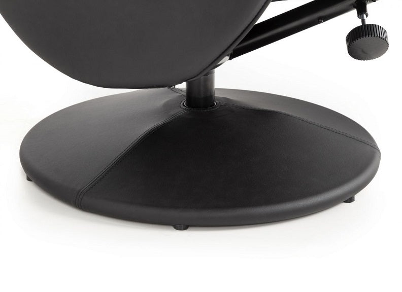The Lugano Recliner and Footstool - simple style, with a black faux leather finish and a pedestal base, perfect for the modern home. Providing comfort and practicality this chair swivels as well as reclines, allowing you to find your preferred position with ease.