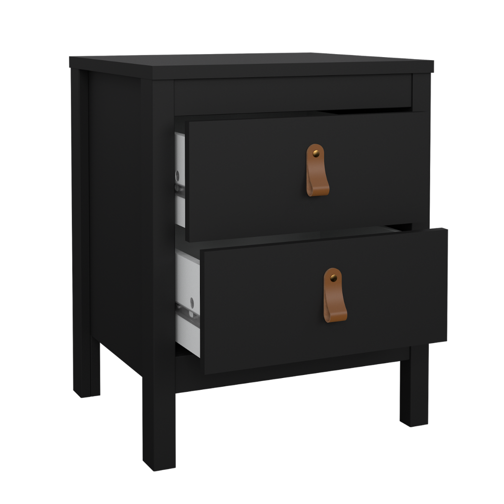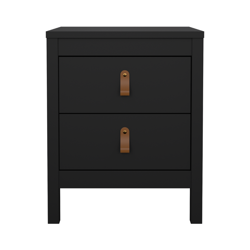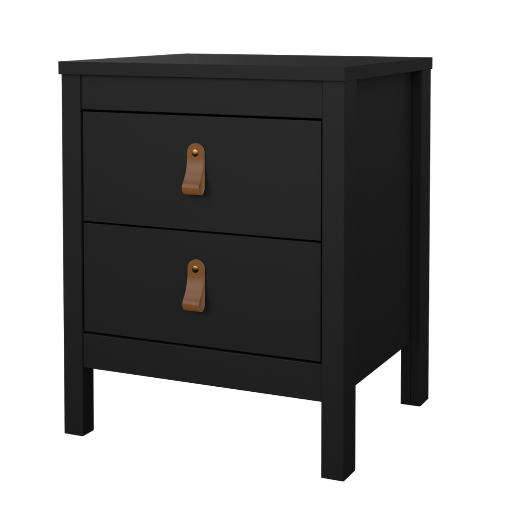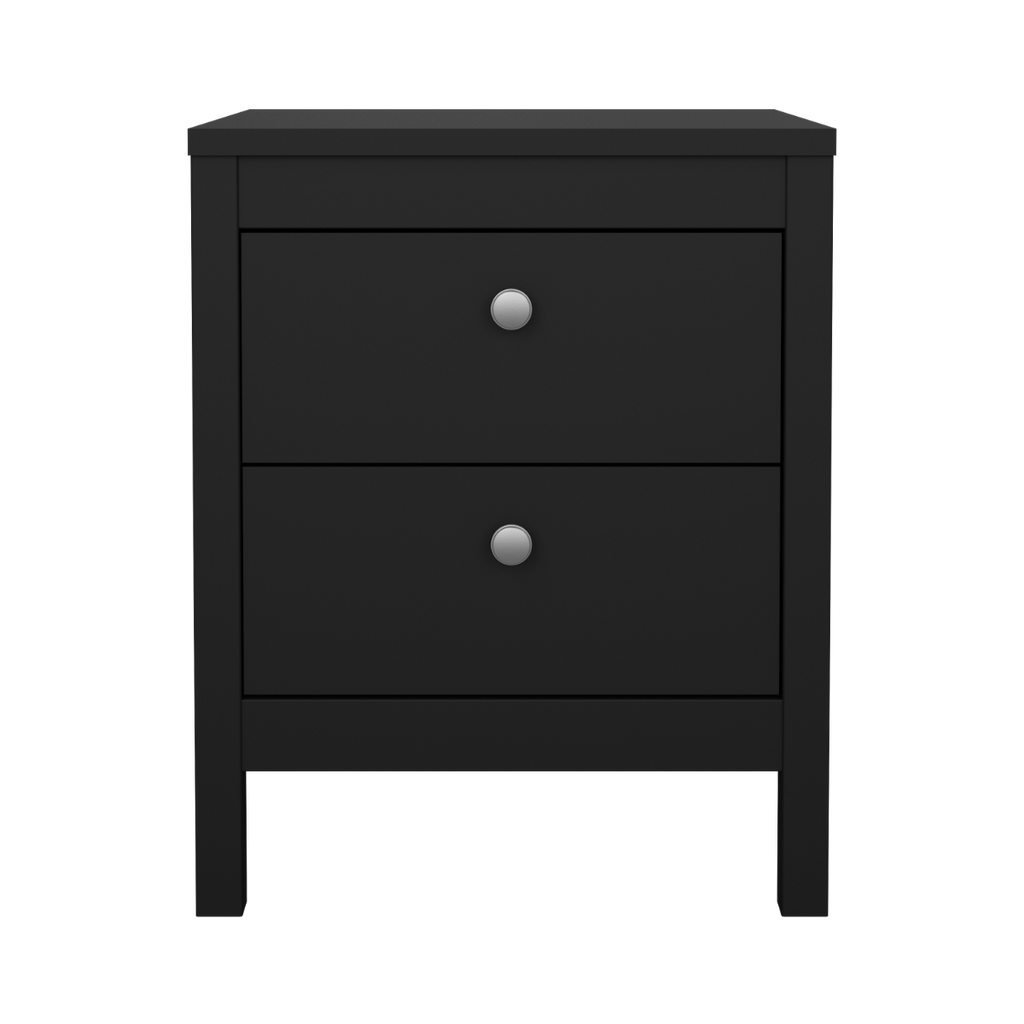 Elevate your bedside space with the Madrid 2 Drawer Nightstand in Black—a perfect combination of classic design and modern functionality, offering a practical and stylish solution for your bedroom.