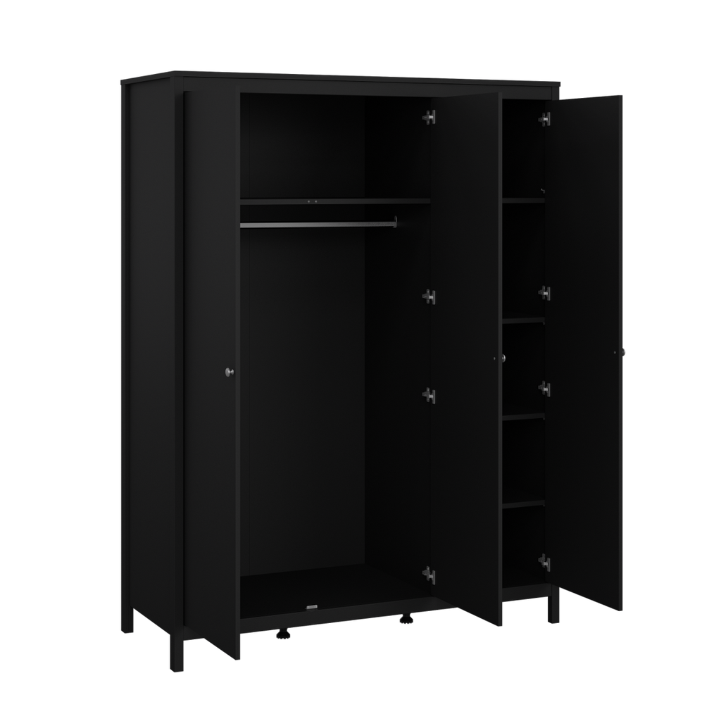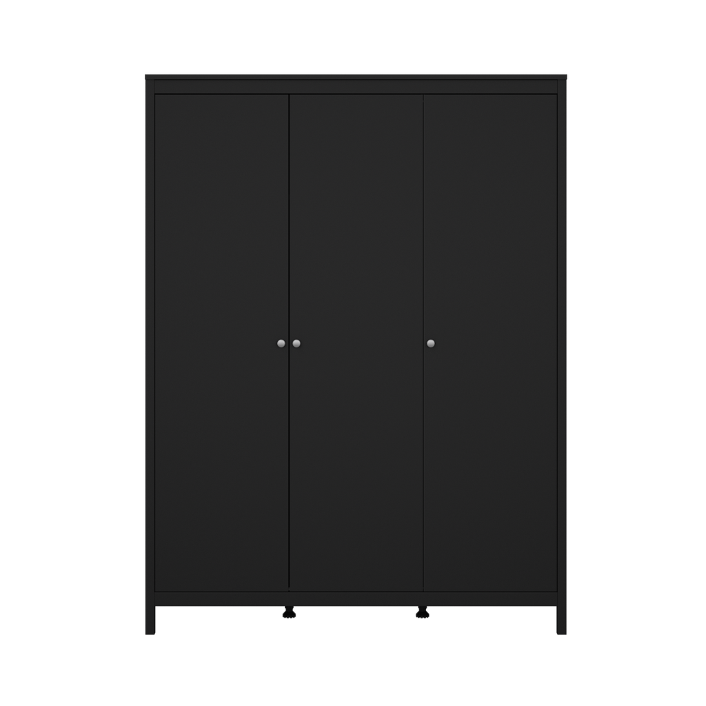 Introducing the Madrid 3 Door Wardrobe in Black—a timeless addition to your bedroom with a simple, classic, and elegant design. A part of the versatile Madrid collection, this wardrobe features a smooth matt finish and clean linear design, effortlessly blending with any taste.