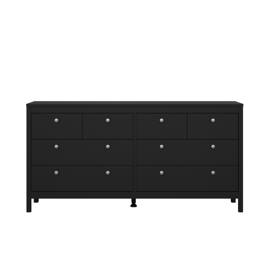 Introducing the Madrid 4 Over 4 Chest in Black—a timeless addition to your bedroom with a simple, classic, and elegant design. A part of the versatile Madrid collection, this chest features a smooth matt finish and clean linear design, effortlessly blending with any taste.