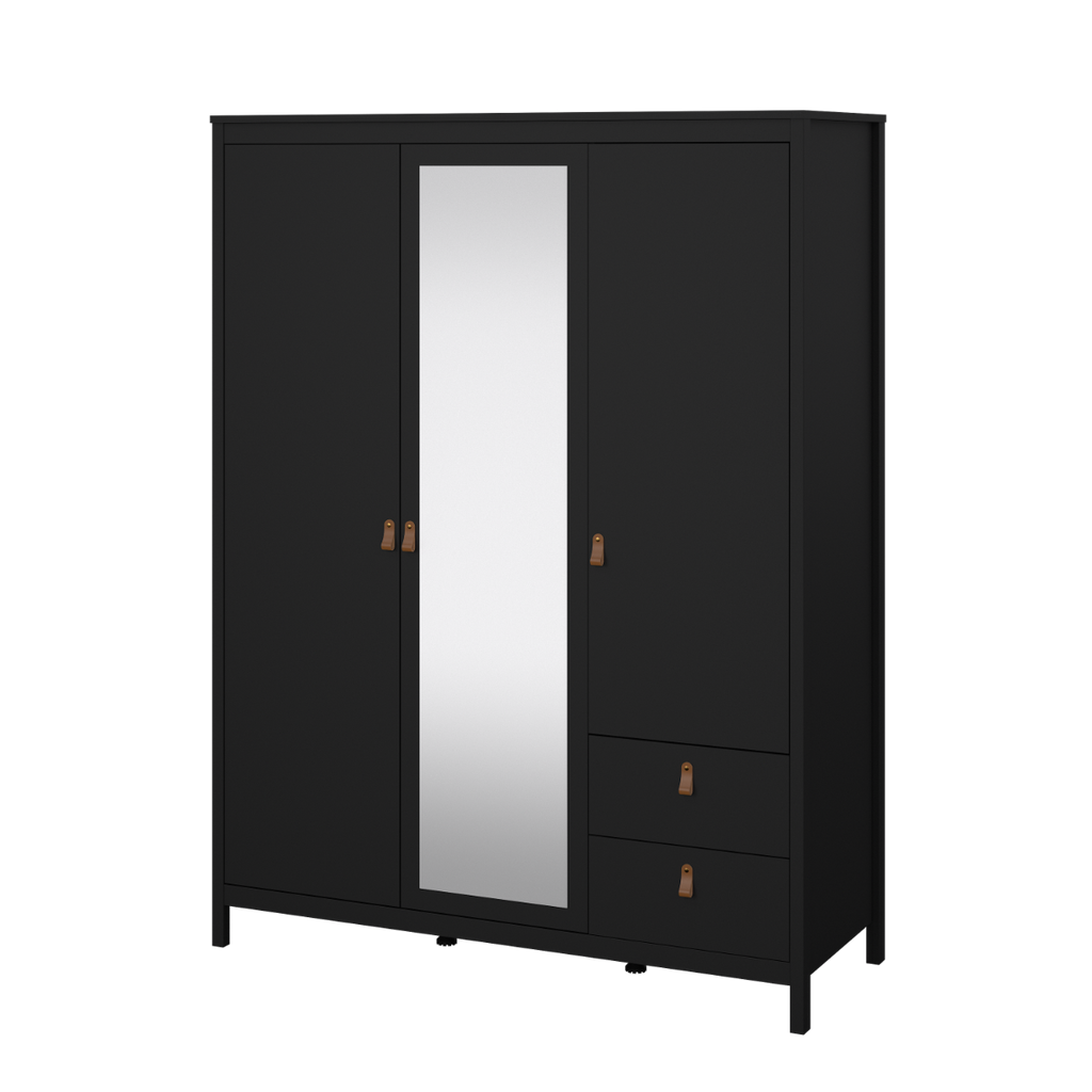 Introducing the Madrid Wardrobe with 2 doors + 1 mirror door + 2 drawers in Black—a timeless addition to your bedroom with a simple, classic, and elegant design. Part of the versatile Madrid collection, this wardrobe features a smooth matt finish and clean linear design, effortlessly blending with any taste.