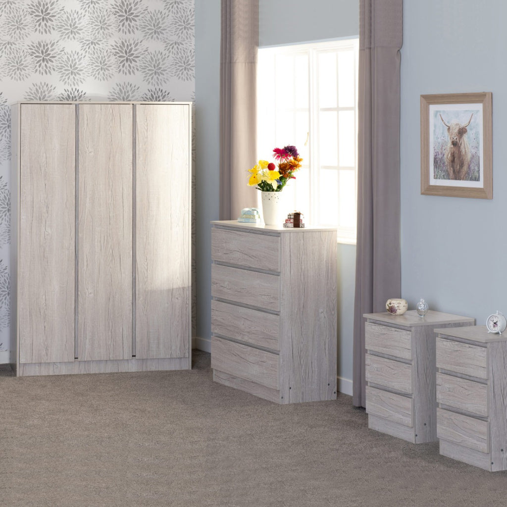 Malvern 3 Door Wardrobe Bedroom Set in Urban Snow