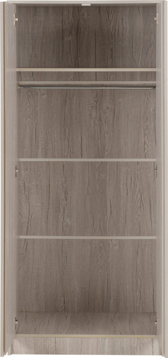Introducing the Malvern Trio by Homeline Furniture, a stylish and practical solution for your bedroom. Available in the sophisticated Urban Snow finish, this set includes a 2-door wardrobe, a bedside table, and a 4-drawer chest, perfectly designed to meet all your storage needs while enhancing your bedroom décor.