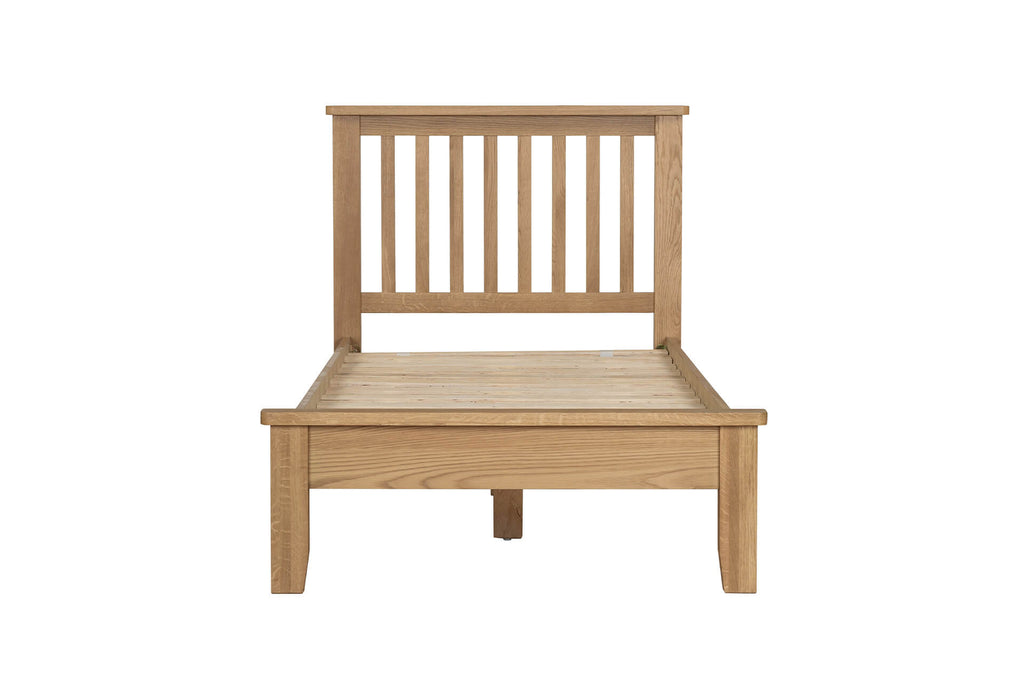 Marsden 3' Bed in Natural Oak brings a country chic charm to any bedroom with its blend of traditional warmth and refined design. Crafted with an Oak and Oak Veneer finish that highlights the natural grain of the wood. Finished with classic shaker-style legs and clean lines, it's an ideal choice for smaller bedrooms or guest rooms, combining timeless style with practical appeal.