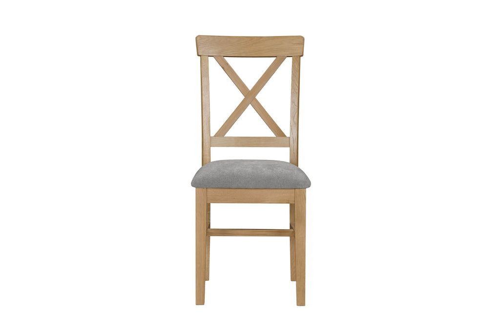 Marsden Dining Chair in Natural Oak combines country chic styling with everyday comfort. Crafted with an Oak and Oak Veneer finish, it highlights the natural grain of the wood for a warm, inviting look. The grey fabric padded seat offers softness and support, while the shaker-style legs add a timeless, traditional touch. Perfectly suited to classic dining spaces, it's an ideal match for the Marsden dining range.