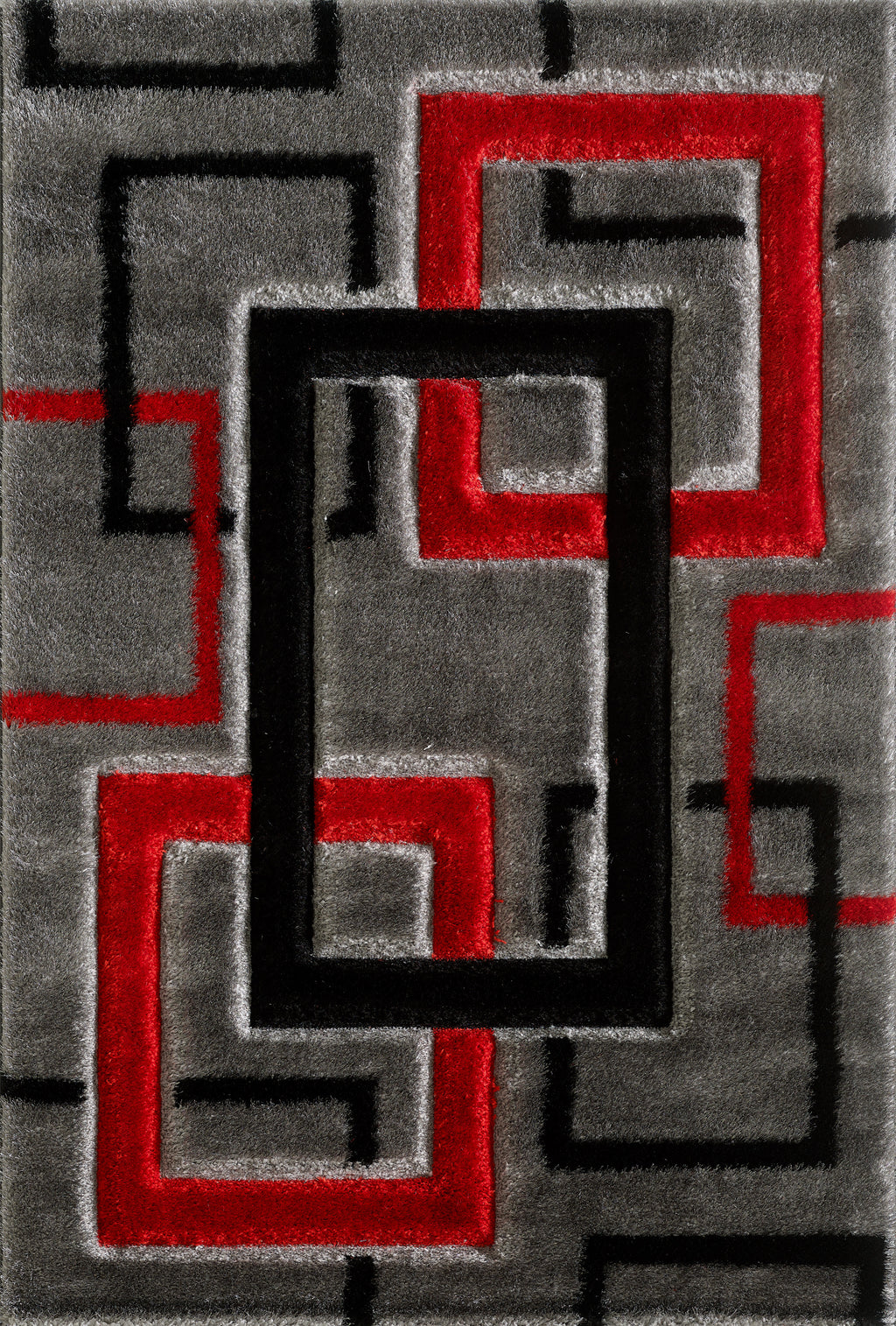 Add a touch of luxury to your home with this statement piece rug. The abstract pattern has been carefully designed to ensure this rug is a show stopping piece that will act as a feature in any room. The square and rectangle pattern offers a 3D effect .The fibre has been carved between the design, giving depth and further texture to the rug. The shaggy concept creates a modern style as well as creating warmth and cosiness in the home, as this rug is soft to the touch. The thick density of the pile offers a treat for the feet. The striking black and red tones work together against a grey canvas, giving a prominent blend of modern colours that will match a variety of coloured or simple rooms.