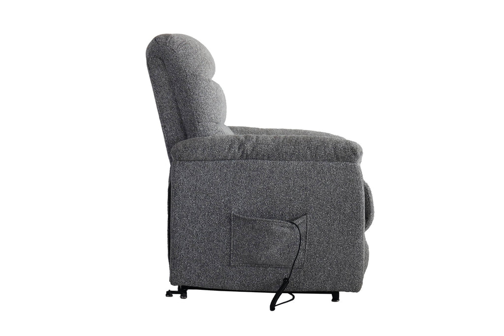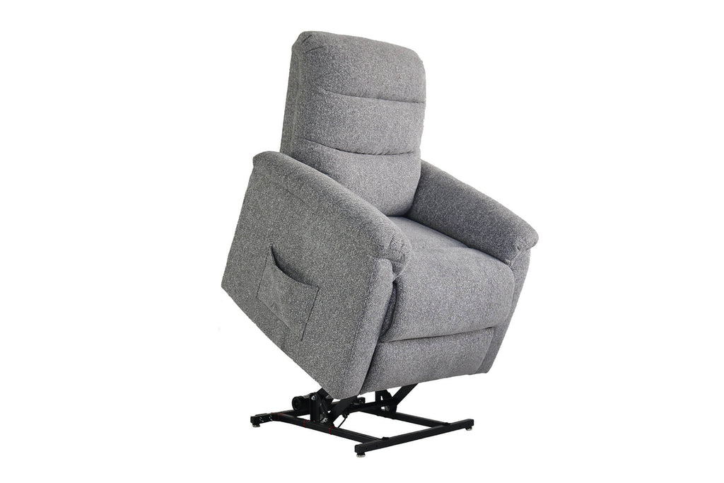 Millie Lift and Rise Chair in Grey offers enhanced comfort and support with its electric dual motor mechanism and built-in lumbar support. Upholstered in a durable woven fabric with rich texture, it features a convenient side pocket for the remote, making it a practical and stylish choice for those seeking ease and independence.