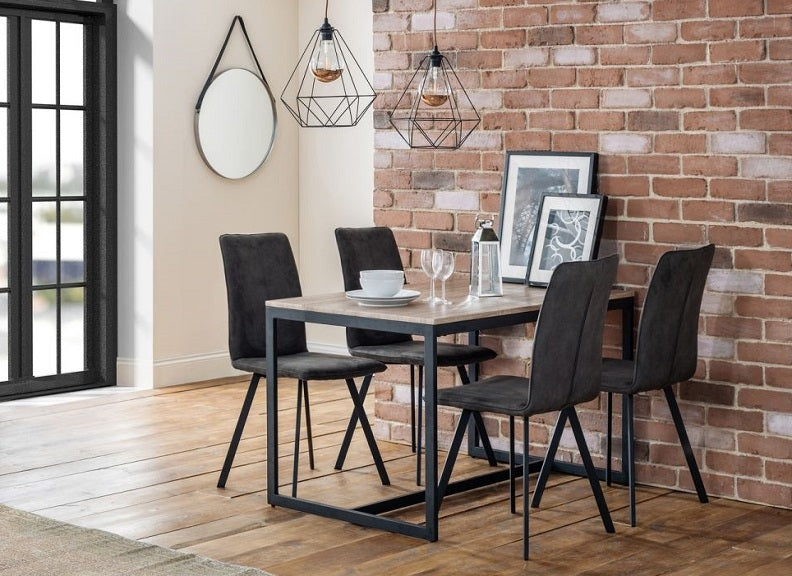 The Monroe Dining Chair combines a retro flair with a contemporary design, perfect for the modern home. Upholstered in a charcoal grey microsuede fabric, with powder coated steel legs, this sturdy design offers a modern, netural design perfect for a range of dining rooms. Match The Monroe Dining Chair with the Brooklyn Dining Table or the Tribeca Dining Table to create a chic industrial feel.