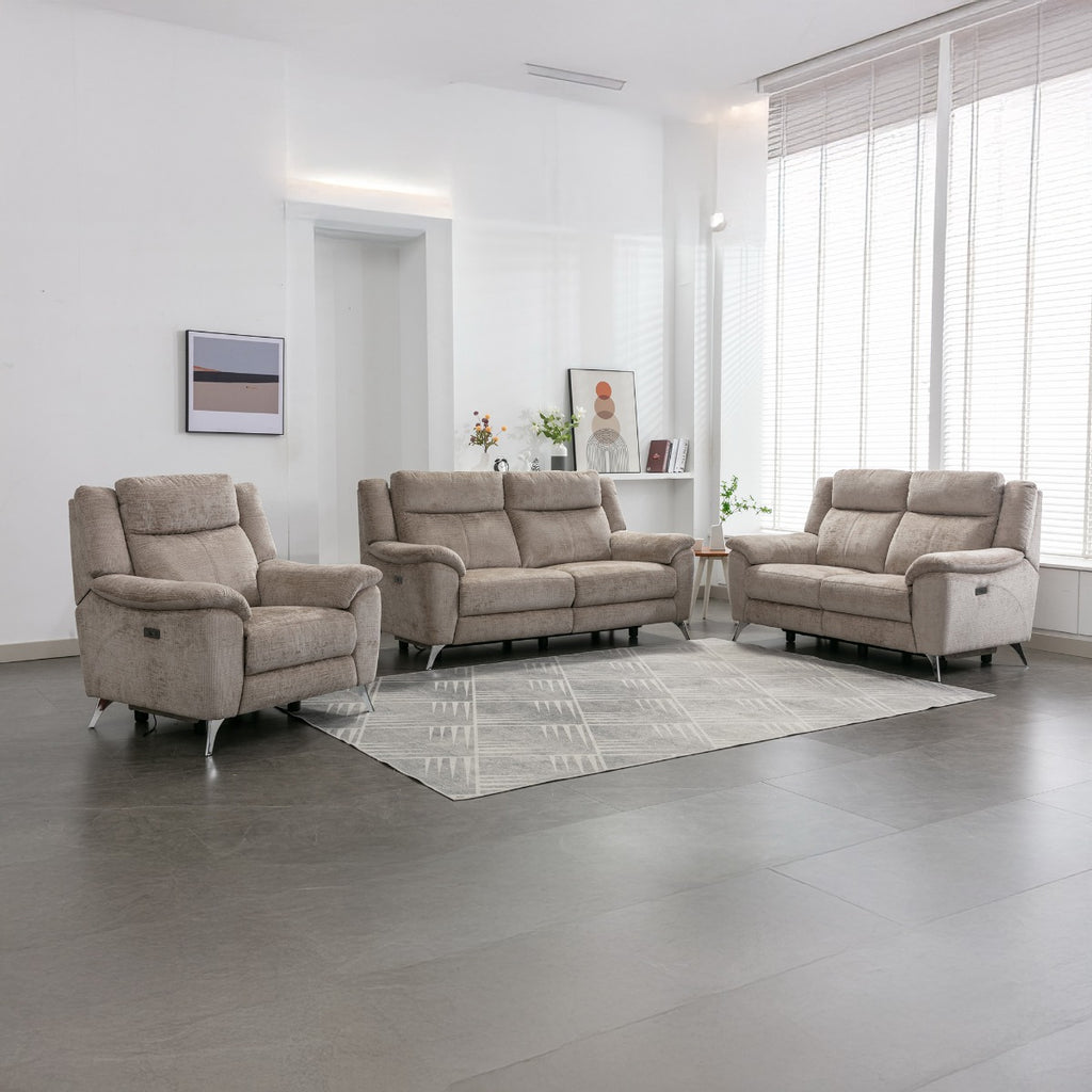 Available in two fabric options, Fossil and Stone in a 3 seater, 2 seater and armchair, the Monroe suite offers a high adjustable headrest on the electric version and allows the user to control the recline function at the touch of a button.