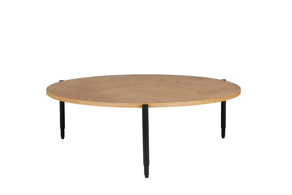 The Nate Coffee Table in Brown or Natural Oak blends contemporary elegance with a parquet-style surface, adding texture and visual interest to your living space. Constructed from engineered wood with a rich brown or natural oak finish, it seamlessly combines modern and traditional aesthetics. Supported by black powder-coated metal legs, this table offers a sturdy foundation while enhancing its industrial charm.