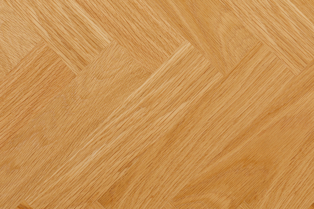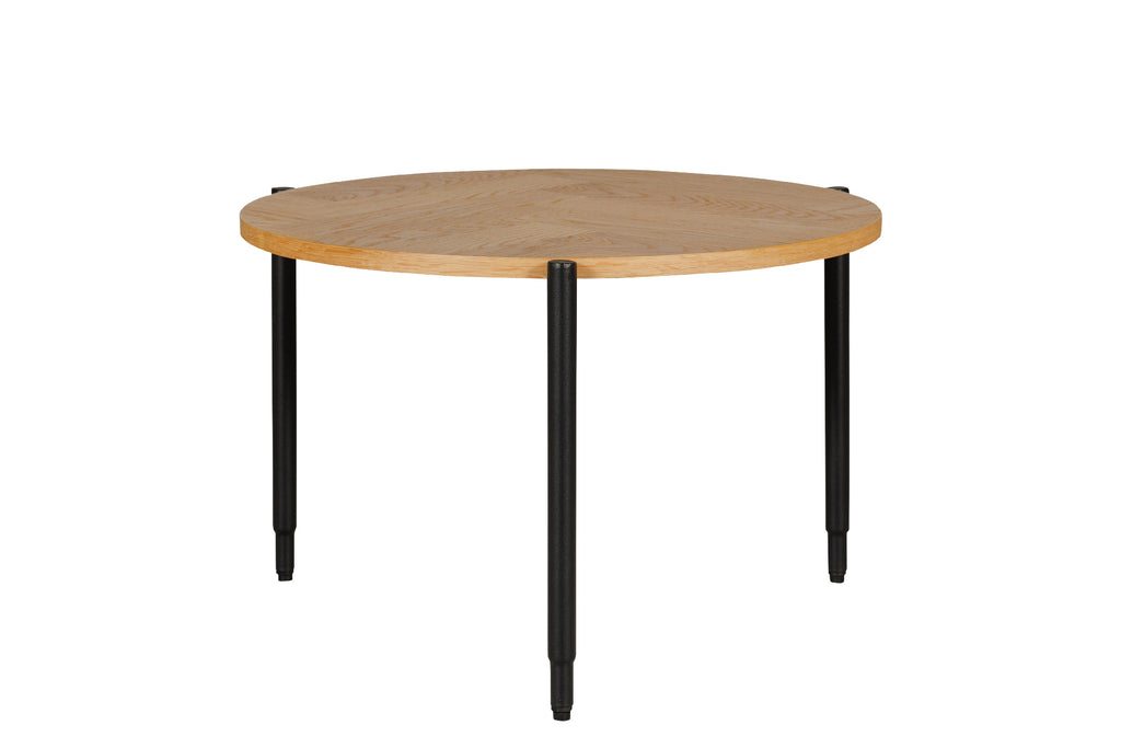 Nate Lamp Table in Natural Oak features a contemporary design with a distinctive parquet-style top, crafted from engineered wood. The natural oak finish enhances its modern appeal, while the black powder-coated metal legs add a sleek, industrial touch. This lamp table is both stylish and functional, providing a sophisticated surface for your lamps or decorative items while seamlessly fitting into various interior styles.