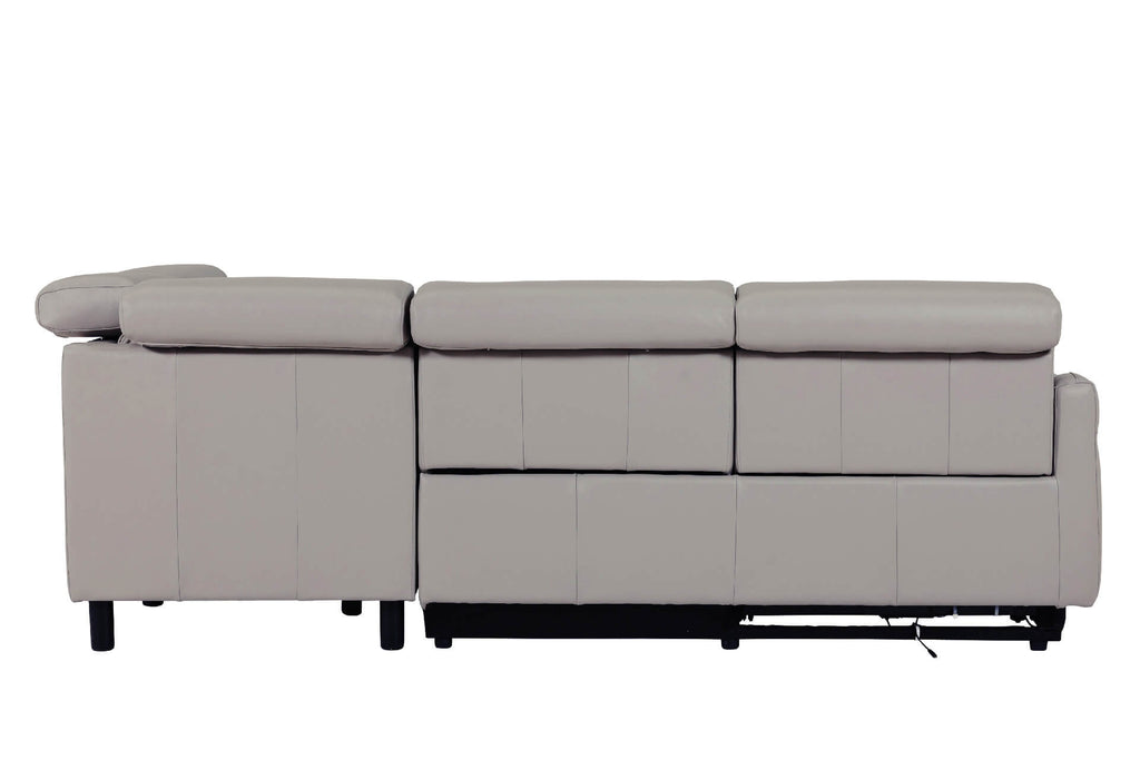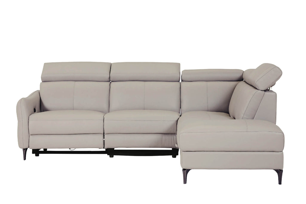 Nico Corner Group Electric Recliner RHF in Stone offers comfort with electric reclining and a single motor. The solid wooden frame ensures durability, while integrated USB and USB-C ports provide convenient device charging. Its elegant stone upholstery complements modern decor.