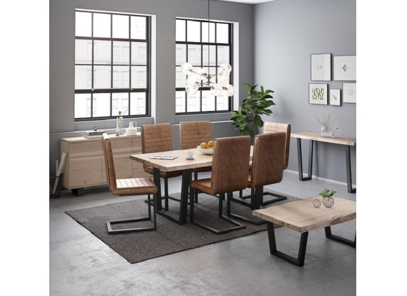 The Oak Mill Tea Tree Four Door Four Drawer Sideboard is available with metal legs and in a beautiful waxed knotty oak finish that beautifully exposes the timber grain.
