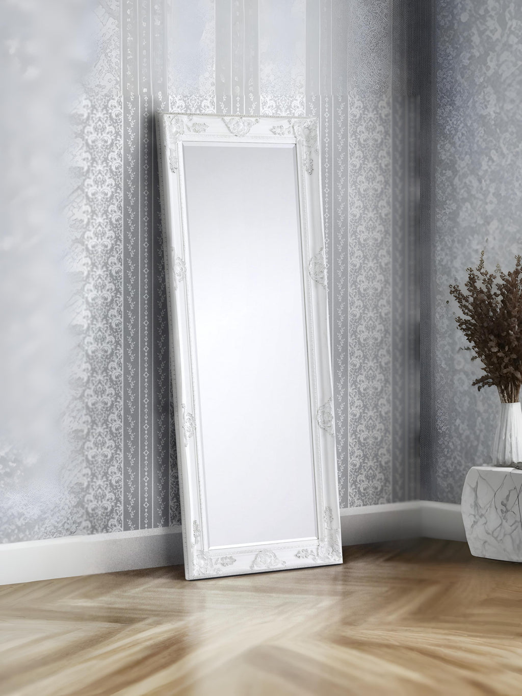 Add a touch of elegance to your home with this mirror in white, combining baroque-inspired detailing with an antique finish that's sure to showcase your unique style. Crafted from durable materials for the ornate frame and backing, this glass mirror will be a long-lasting addition to your home's decor. A full length mirror can breathe new life into a small space, or simply allow you to see your entire outfit. This large 170cm x 70cm glass mirror can be wall-mounted using the supplied fittings, or securely leant against the wall using the safety strap supplied. With no need for assembly, your dressing mirror can be on full display instantly, adding antique glamour to any room. Trust in our 30 years of experience while you create your ideal home.