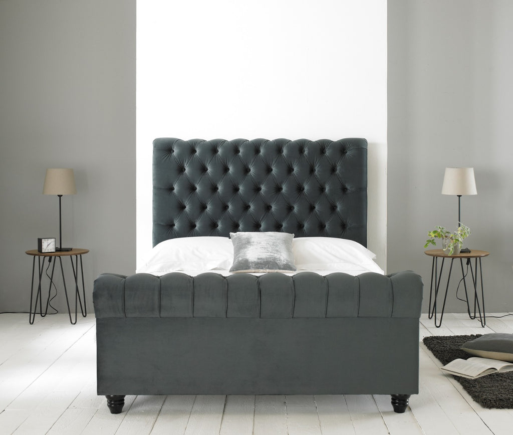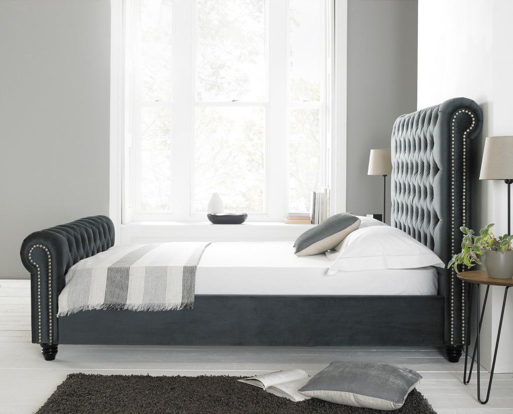 Treat yourself to the ultimate in luxury living with the Paris Grey Velvet Bed in 5ft. Transform your bedroom into a haven of elegance and sophistication, and indulge in the epitome of comfort and style.