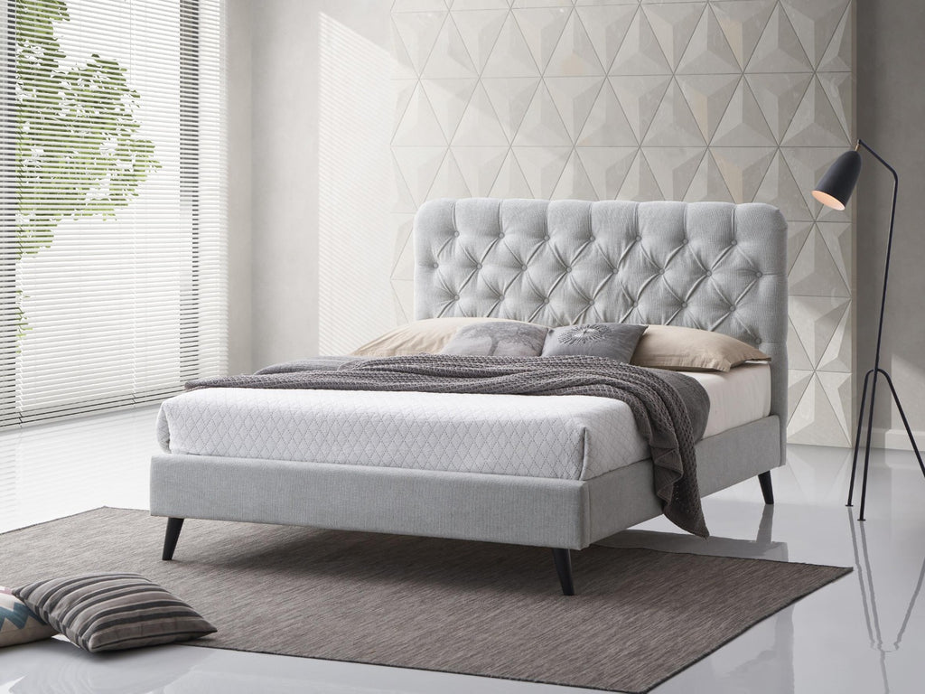 Available in two convenient sizes - 4ft6 and 5ft - the Pemberton Bedframe adapts seamlessly to your space requirements. Choose from three exquisite color options - Light Grey, Blue, and Dark Grey - to effortlessly complement your existing decor.