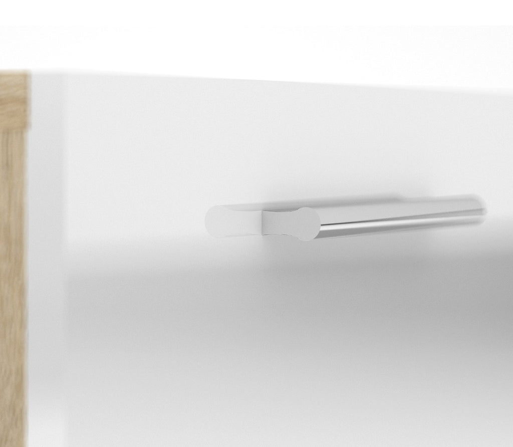 Revitalize your bedroom organization with the Pepe 8 Drawer Chest, a sophisticated offering from Homeline Furniture. This stylish and functional chest is thoughtfully designed to bring a modern and elegant touch to your space, featuring a sleek fusion of oak with high-gloss white accents and contemporary metal handles.