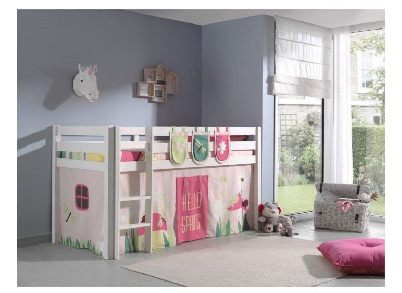 New on Homelinefurniture, the ultimate sleeper bed, The Pino Mid-Sleeper With Slide and optional accessories. This high end bed is made from wood board and with the optional accessories will amuse your child endlessly. The accessories are an Astro, Spring or Princess themed bed set including a bed cover & pillowcase, a tunnel, rail pockets(x3) and surround curtain.
