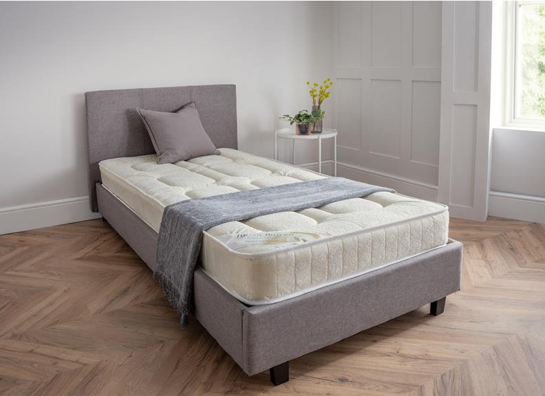 With an 18 cm depth profile, this is an ideal bunk bed mattress due to its thin profile(~18 cm/7 ins). Quality UK manufactured with bonnell spring unit inside, rod edge support, polyester fillings inside and a Belgian Damask Quilted cover.