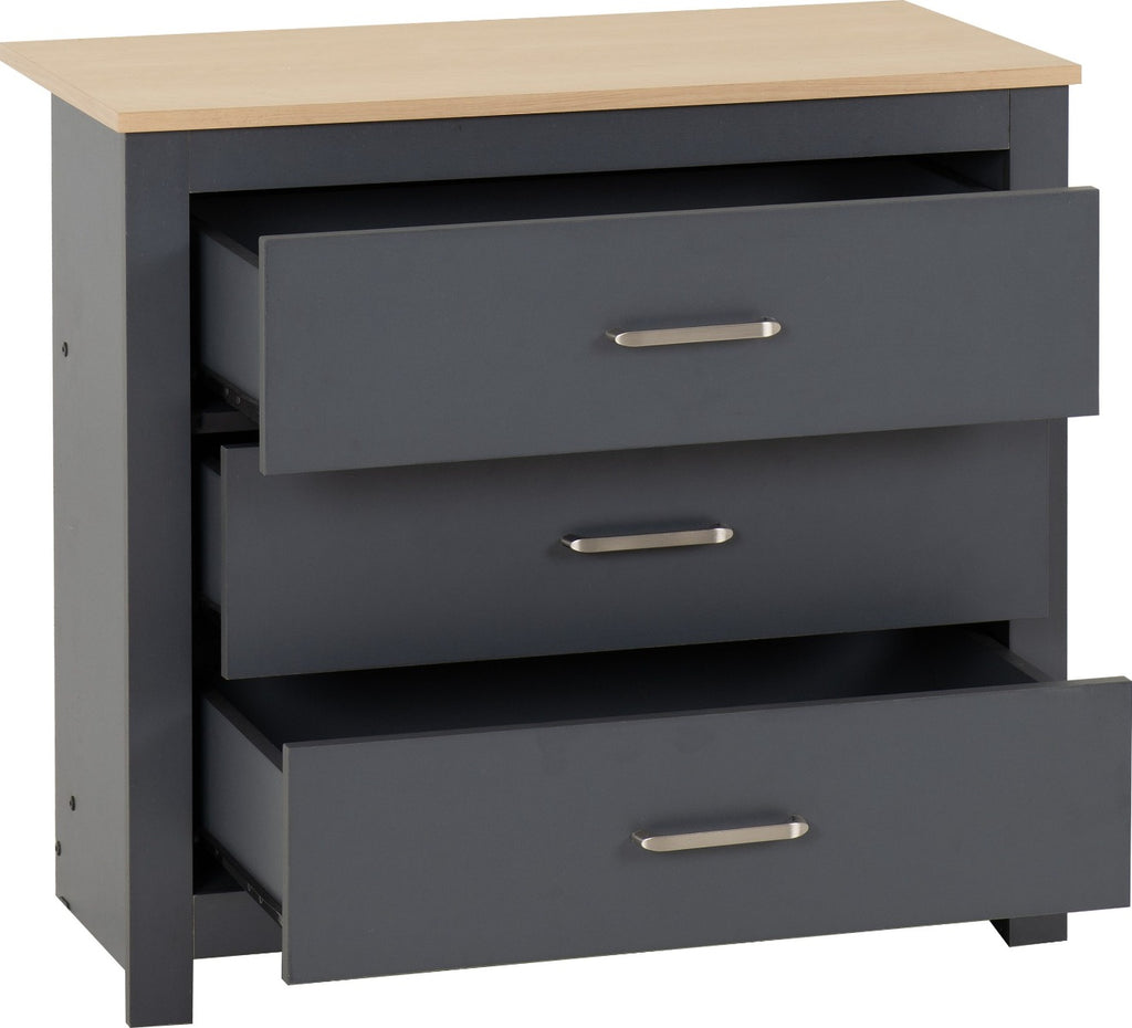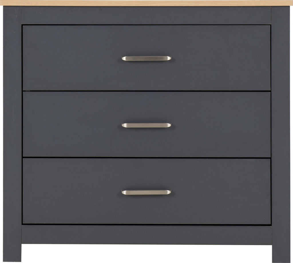 Modern Design: Featuring a sleek Grey/Oak Effect finish, the Portland 3 Drawer Chest adds a contemporary flair to your bedroom decor, elevating its aesthetic appeal.