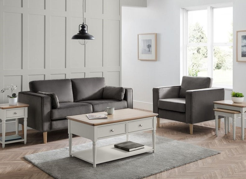 - Elegant Finish: Crafted in a grey lacquer with a limed oak effect top, this item adds sophistication and charm to any room.