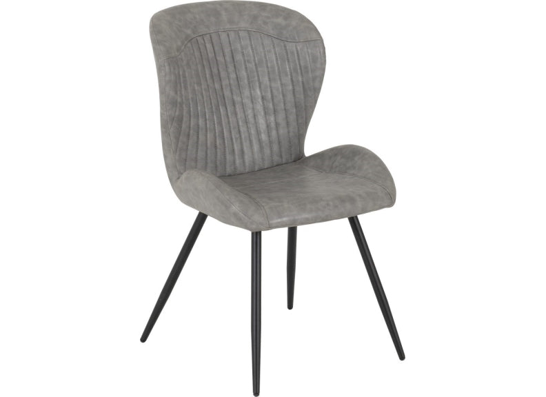 Quebec Dining Chair with faux leather effect upholstery, deep foam padding and black metal frame.