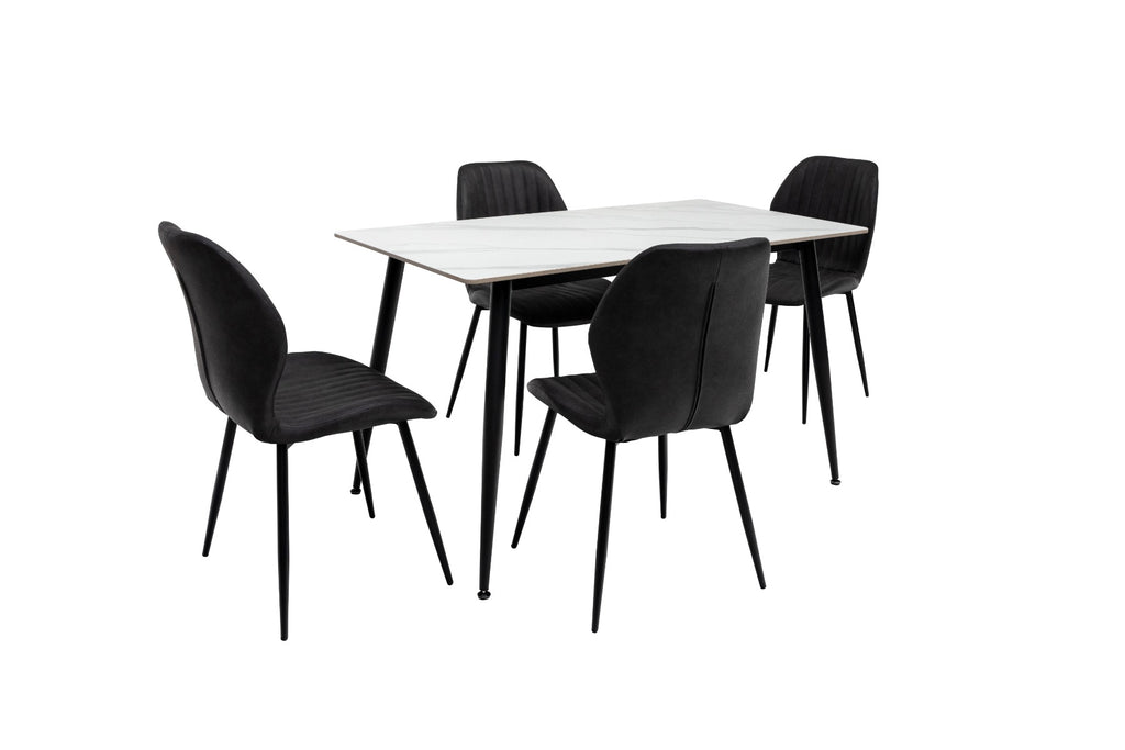 The Riga 1.6m Dining Table in Snow White brings a touch of modern elegance to your dining space. With its pristine Snow White tabletop and sleek black legs, this table is designed for both style and practicality, perfect for everyday dining and entertaining. Its simple yet sophisticated design makes it a versatile addition to any home decor. Also available in Italy Grey.
