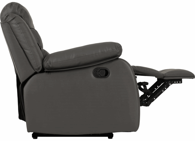 ROMA GREY FAUX LEATHER 3RR+2RR SOFAS with manual reclining action and rear drop down drinks tray on the three seater.