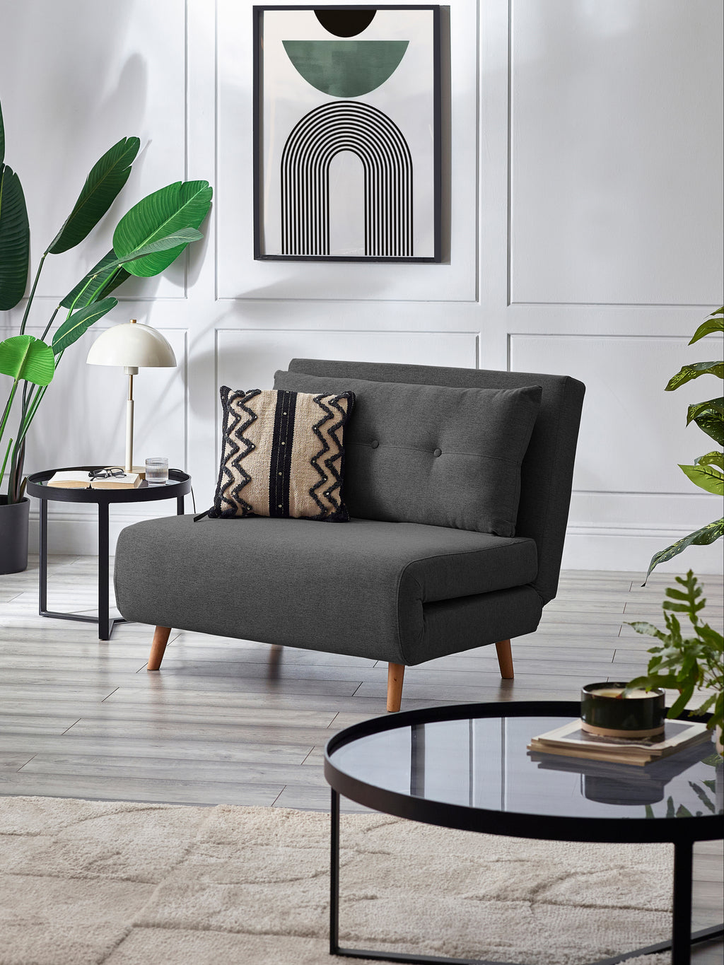 The Rowan Single Sofabed in Mid-Grey combines chic design with everyday functionality. Upholstered in a stylish mid-grey fabric, it’s supported by wooden-effect legs that bring a touch of natural charm. This versatile piece comes with a button-tufted matching pillow for extra comfort and easily transforms into a single bed for guests. Light and easy to move, it’s perfect for rearranging or adapting to different spaces. Simple assembly is required, making it the perfect solution for adding both style and practicality to your home.