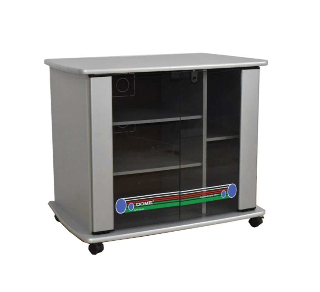 GIE's S32M Silver TV Unit is a wonderful storage piece. With three adjustable inner shelves and a tempered safety glass exterior, this piece is very compact and easy to use. There are four exterior back-hole plugs which are wonderful for running wires, ensuring neatness and eliminating clutter. This unit is on wheels for easy movement, all of which have a lock feature to keep the piece stationary. The glass doors also have a lock feature, perfect for keeping out little ones! This unit is sleek in design and easy to assemble. |