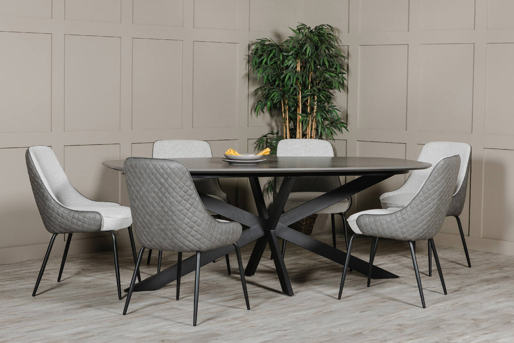 <p>Sadia Oval Dining Table in Smoke – a perfect blend of style and functionality for your dining area. Crafted with a textured melamine top, this table offers superior durability, making it ideal for everyday use. The melamine finish ensures the table is heat, stain, and scratch-resistant, guaranteeing long-lasting beauty and functionality. Paired with a sleek black powder-coated metal base, the Sadia Dining Table exudes modern sophistication.</p>