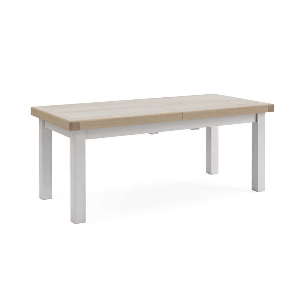 The Salcombe collection brings a fresh painted finish, natural oak tops, and classic design—delivering timeless storage and character to your living and dining areas. Salcombe LARGE EXT DINING TABLE. Dimensions: W2000/2450 x H805 x D950mm. Assembly may be required. Free Nationwide delivery from Homeline Furniture in 2-3 weeks.