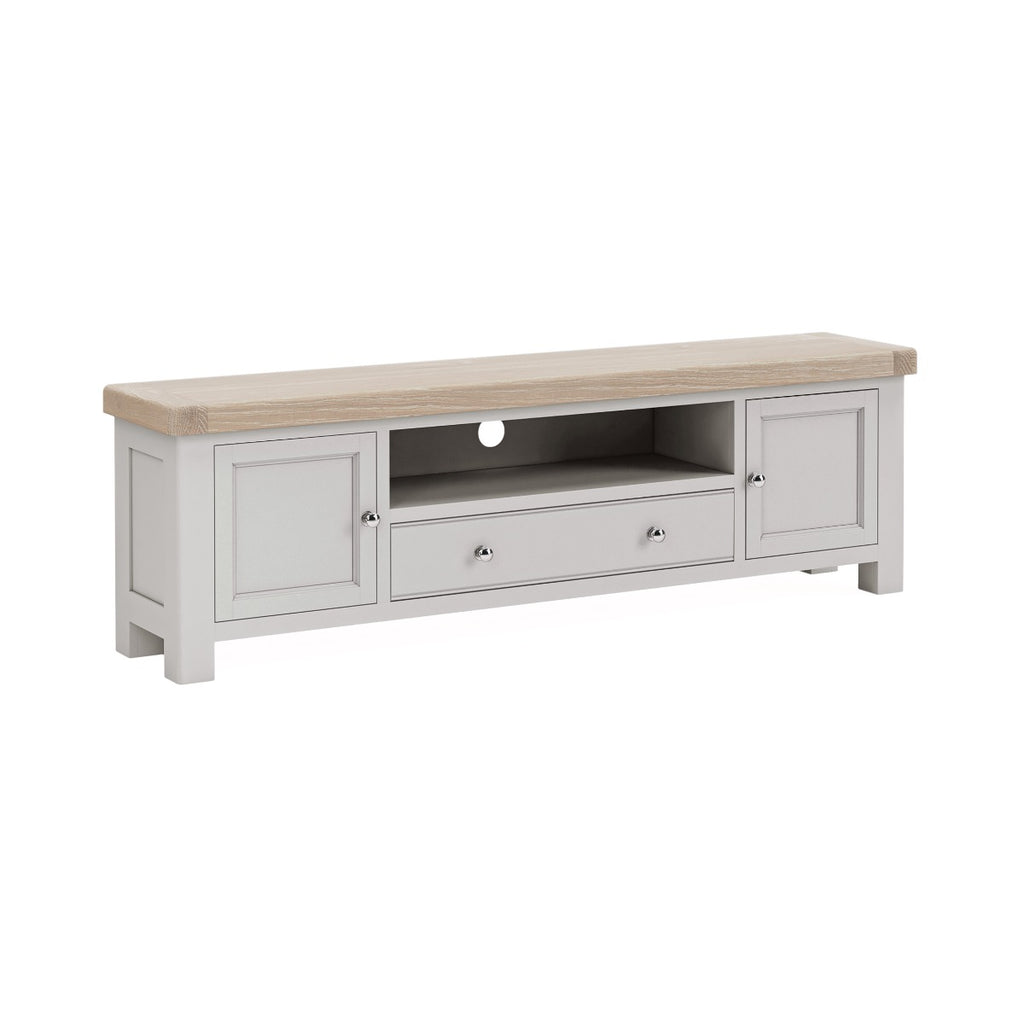The Salcombe collection brings a fresh painted finish, natural oak tops, and classic design—delivering timeless storage and character to your living and dining areas. Salcombe TV UNIT 1900. Dimensions: W1900 x H580 x D380mm. Assembly may be required. Free Nationwide delivery from Homeline Furniture in 2-3 weeks.