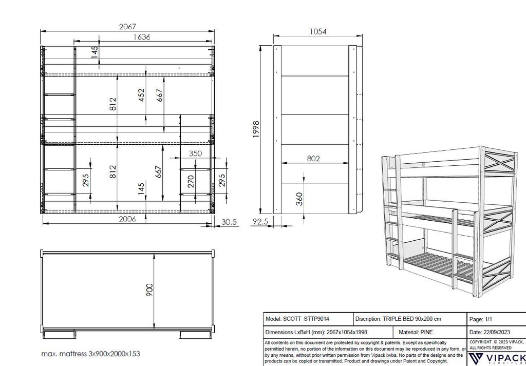 Ideal for shared bedrooms or homes with limited space, the SCOTT Triple Bunk Bed combines durability, elegance, and space efficiency to provide a long-lasting and attractive addition to any interior.