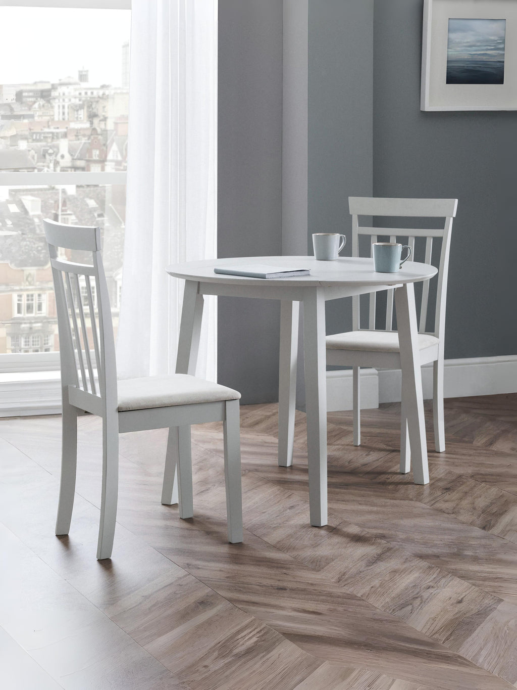 A refined high-backed dining chair in an immaculate grey lacquered finish. Its clean, crisp look fits seamlessly with both traditional and contemporary décor, while its gently shaped back and padded seat combine to offer exceptional comfort.