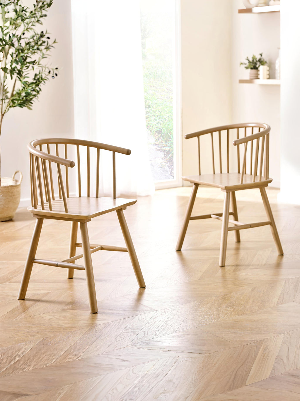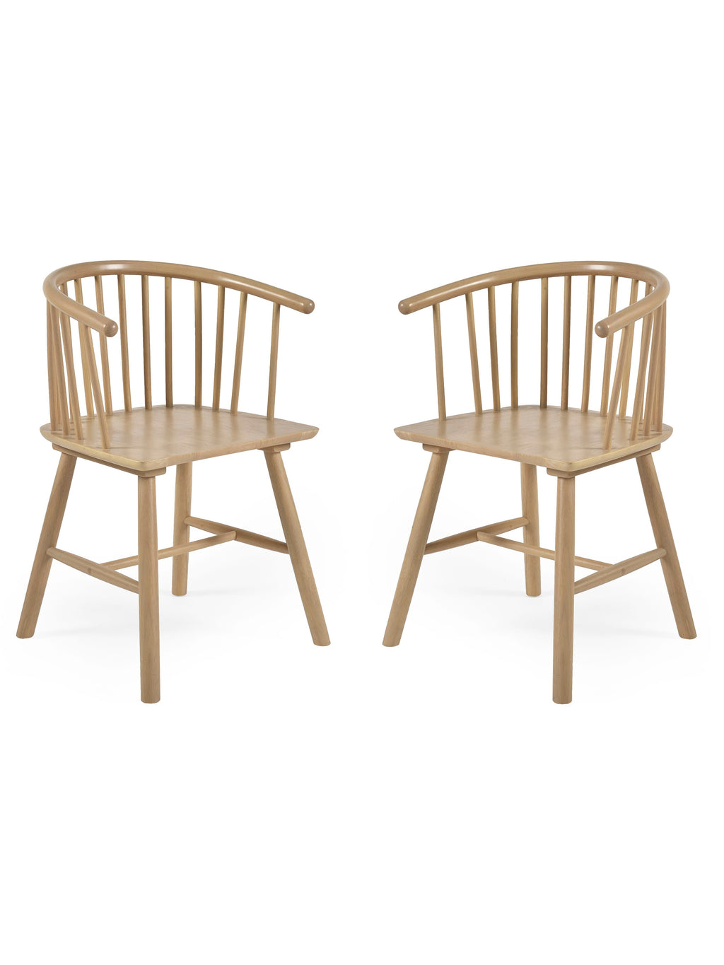 Add a touch of comfort and elegance to your dining area with this beautifully designed chair. Finished in a light beech oak effect, the smooth surface highlights the natural wood grain and warm, inviting tones. The curved spindled back and wraparound armrests offer excellent support, taking the weight off your shoulders for a more relaxed seating experience. Strong spindle legs provide lasting stability, making it an ideal choice for the head of the table or as a standout piece in your dining setup. Perfect for both everyday meals and special occasions.
