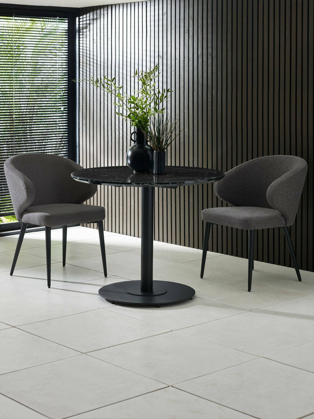 Add contemporary charm to your dining space with this elegant mid-grey dining chair. Upholstered in soft, durable linen-type fabric that is hypoallergenic and free from harmful materials, it complements a wide range of interior styles while offering a comfortable seating experience. The curved-shaped backrest is ergonomically designed to provide excellent support, making it ideal for everyday use. With sturdy legs for long-lasting stability. Easy assembly ensures a hassle-free setup.