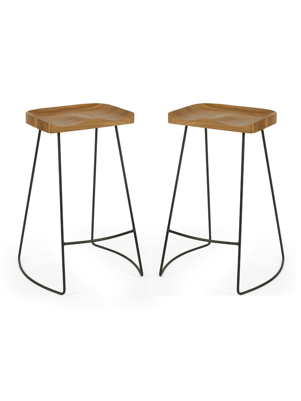 Bring a stylish retro vibe with a touch of modern edge to your space with the Set of 2 Travis Bar Stools. Crafted from solid oak, each stool showcases refined wood grains that add warmth and character to any room. The black powder-coated iron frame ensures exceptional durability, while offering a sleek, urban touch that complements modern kitchens, bars, or dining areas. With sturdy construction and a striking design, these stools effortlessly blend practicality and style, making them the perfect statement pieces for your home. Whether you're enjoying casual meals or hosting friends.