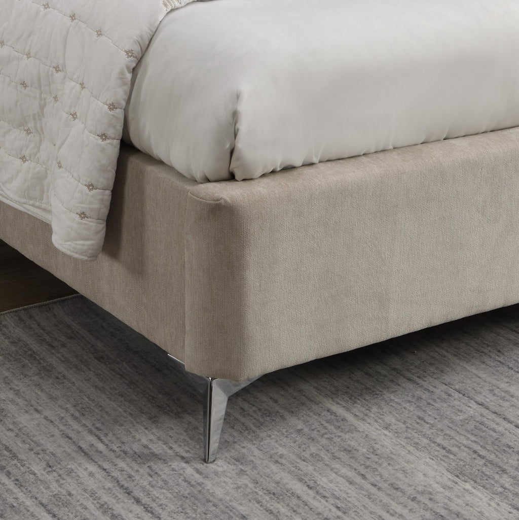 This modern luxurious bed has sleek metallic feet and the slatted mattress base offers excellent support.