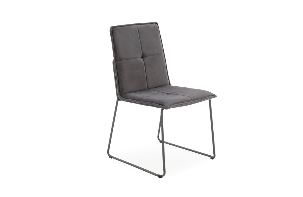 The Soren dining chair is versatile, suitable for dining, bedroom or office. It features metal legs and a plush velvet cushion.