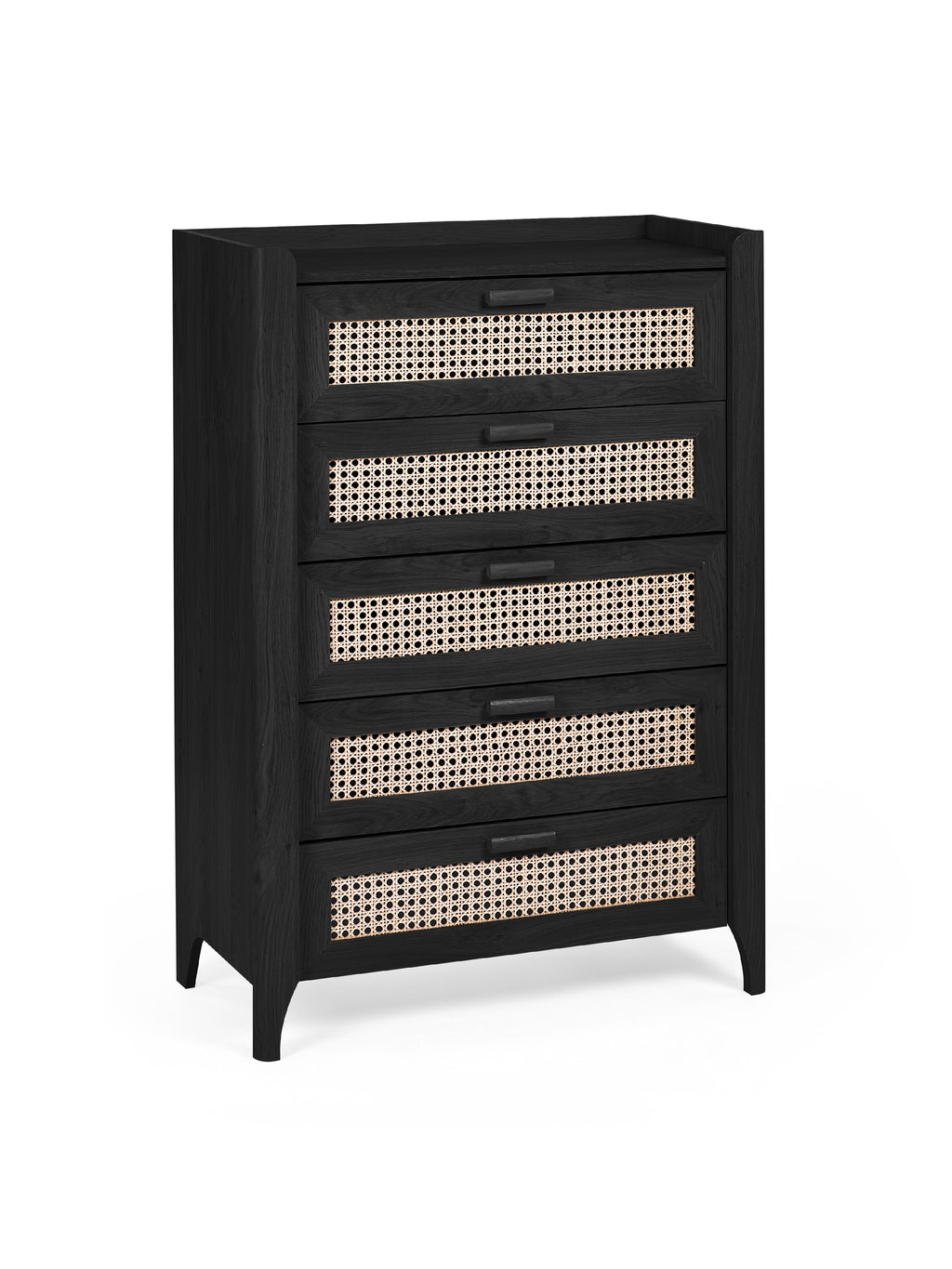 Add elegance and function to your room with the Sydney 5 Drawer Chest in Black Ash. Featuring a beautifully curved design, raised lip edges, and a rattan print sticker front, this piece provides a practical and stylish storage solution. The Black Ash finish gives a sleek, modern feel, while the five spacious drawers offer ample storage for clothing and accessories. The rattan print ensures there are no gaps or holes, keeping dust at bay. Simple assembly is required, allowing you to enjoy this sophisticated piece in no time.