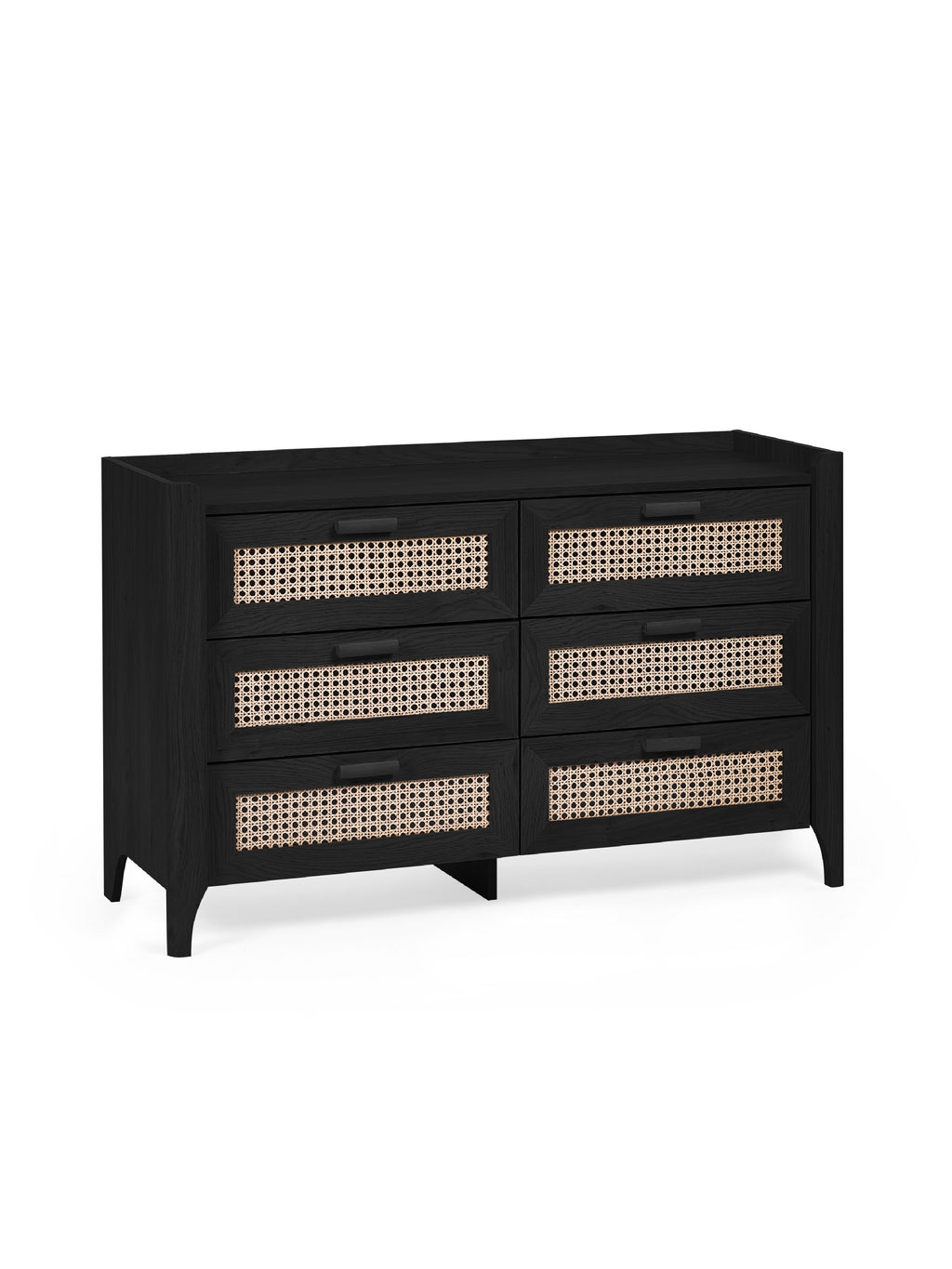 The Sydney 6 Drawer Wide Chest in Black Ash is a beautifully sleek piece with a bohemian feel. The exquisitely curved edges, raised lip, and rattan print sticker front combine practicality and charm, ensuring a dust-free design with no gaps or holes. Featuring six wide drawers, ideal for storing bedding or clothing, and extra space on top for decorative items. Simple assembly is required, so you can enjoy this spacious and stylish storage solution in no time.