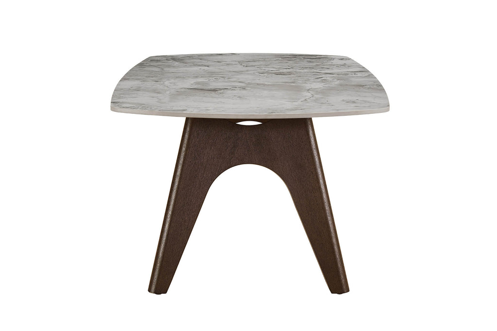 Valley Coffee Table in Grey is a perfect blend of style and durability. Its sinter stone top is water repellent, scratch-resistant, stainproof, and non-porous, ensuring long-lasting functionality. Crafted from solid wood and wood veneer, this elegant table adds a touch of modern sophistication to any living space.