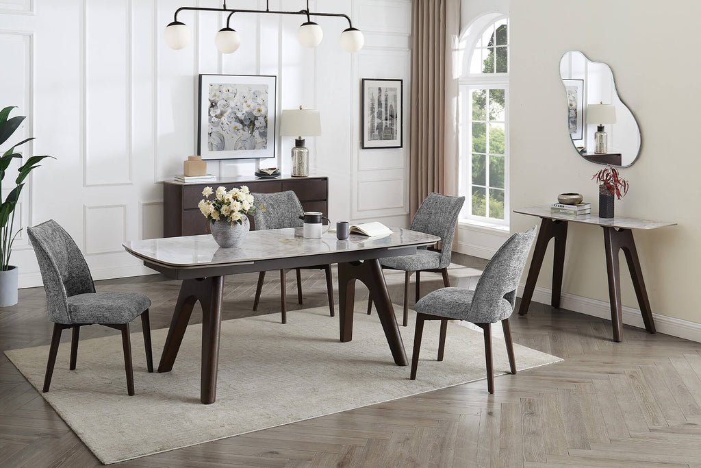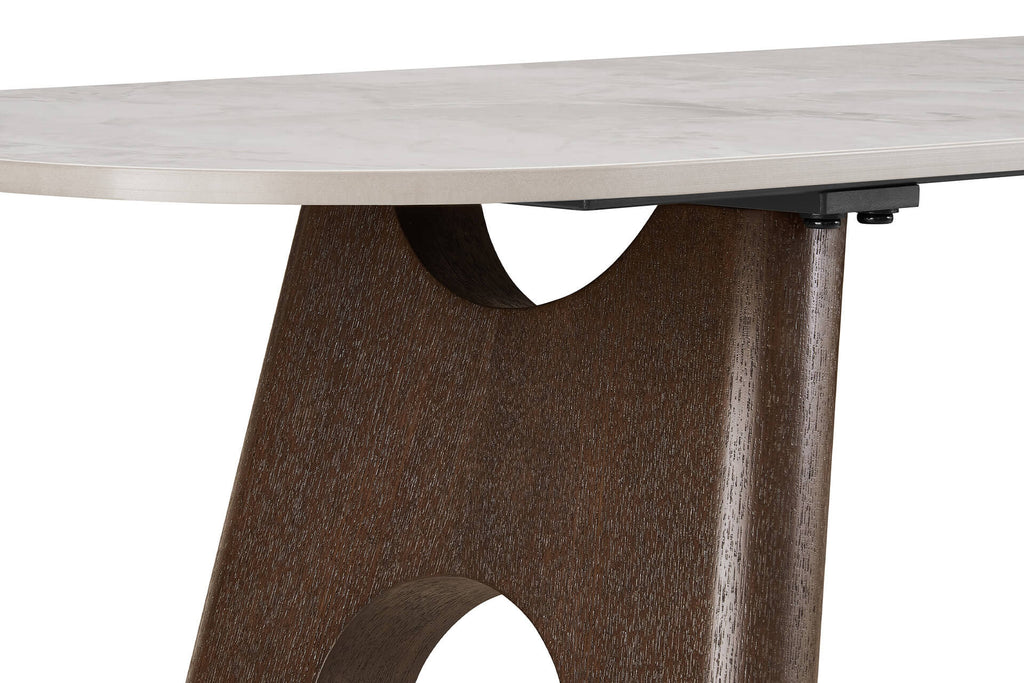 Valley Console Table in Grey is a perfect blend of style and durability. Its sinter stone top is water repellent, scratch-resistant, stainproof, and non-porous, ensuring long-lasting functionality. Crafted from solid wood and wood veneer, this elegant table adds a touch of modern sophistication to any living space.