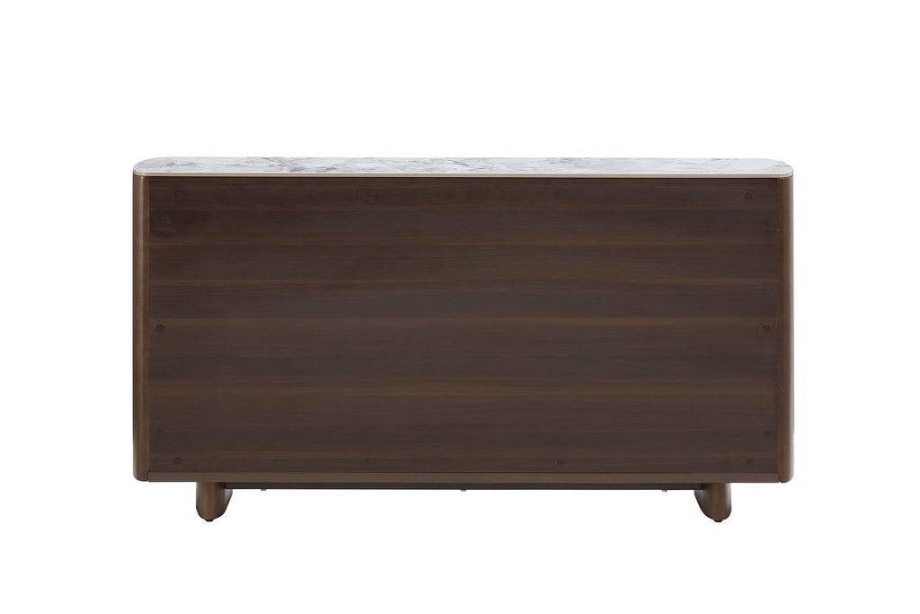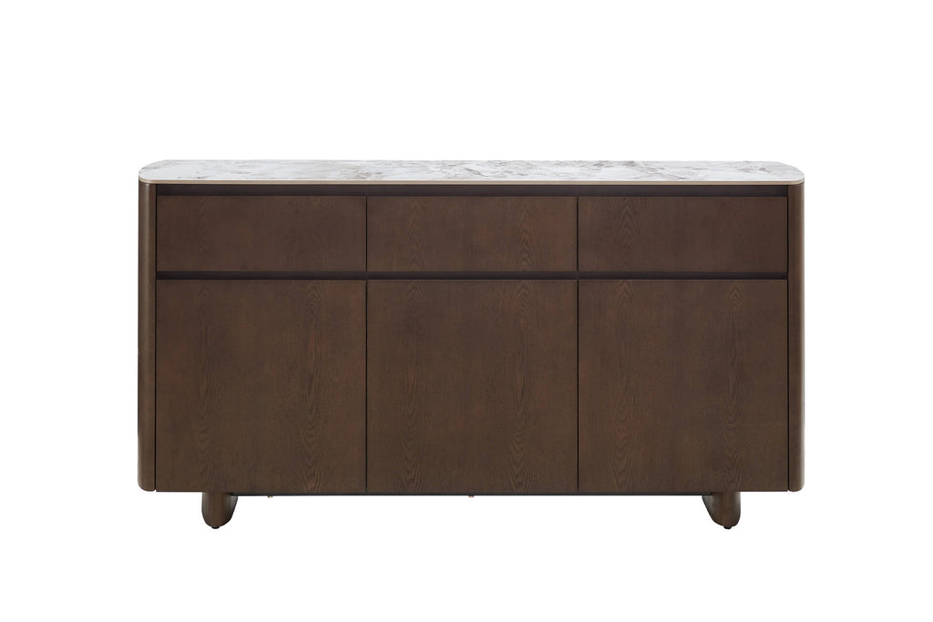 Valley Sideboard in Grey combines sophisticated design with exceptional functionality. Featuring a durable sinter stone top, it offers water repellent, scratch-resistant, stainproof, and non-porous properties for easy maintenance. With 3-door and 3-drawer storage, this sideboard provides ample space to keep your home organised. Crafted from solid wood and wood veneer, it brings a touch of timeless elegance to any space.