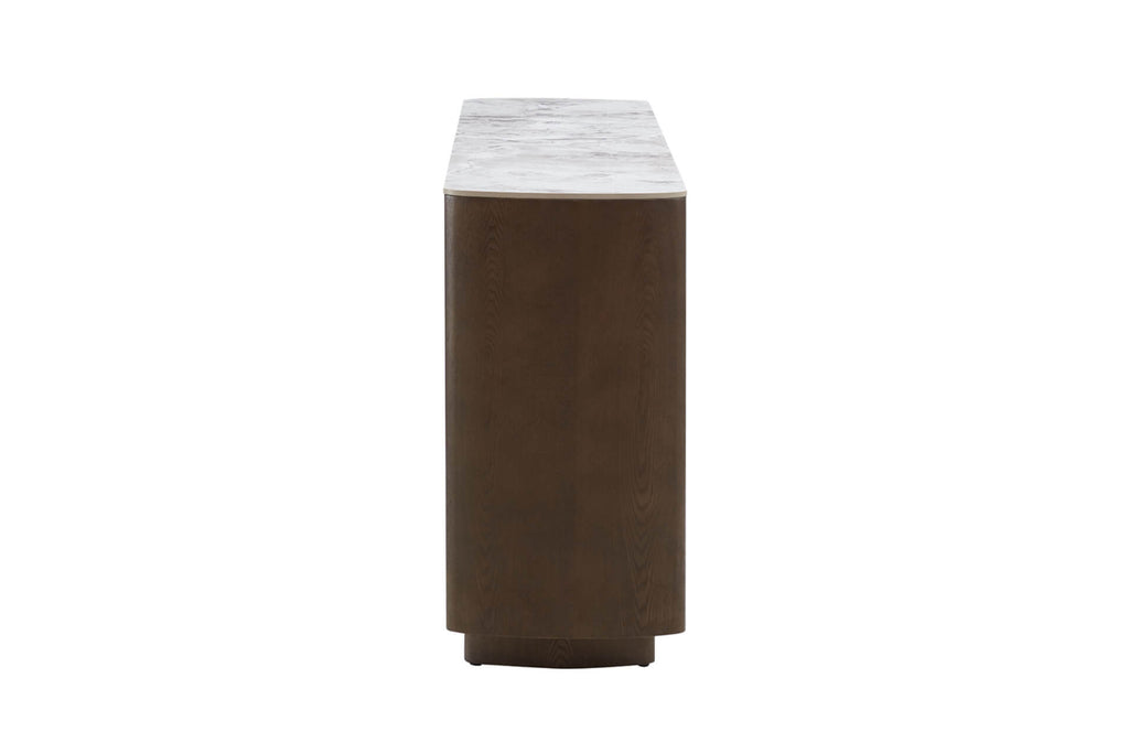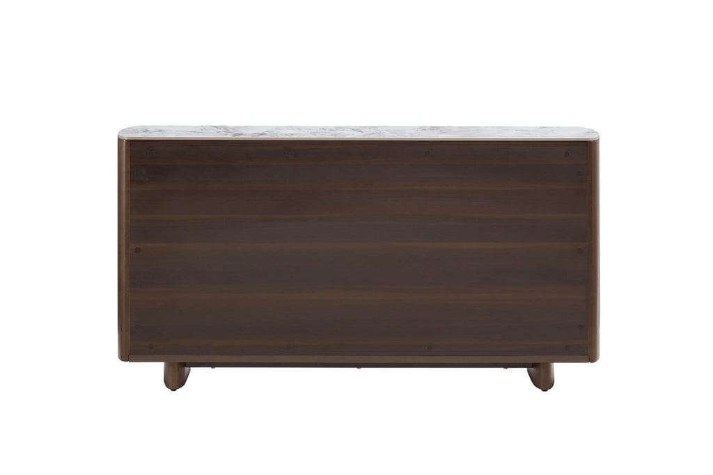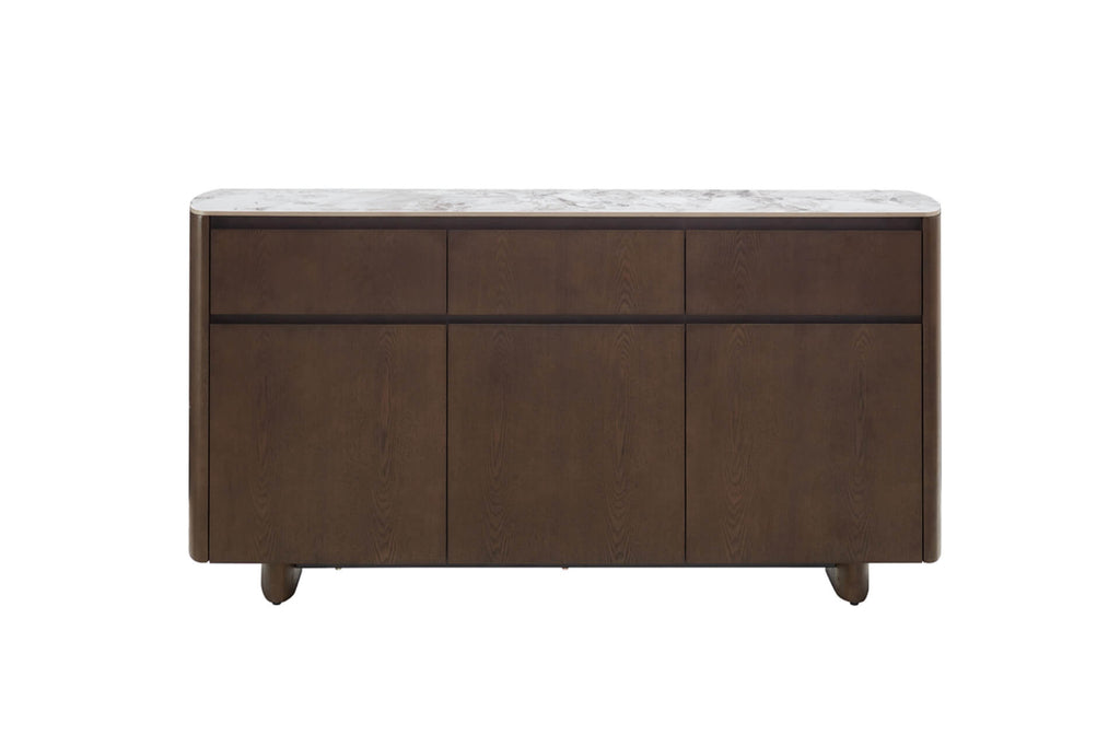 Vanosa Sideboard in Brown combines modern functionality with timeless style. Featuring a durable sinter stone top that is water repellent, scratch-resistant, stainproof, and non-porous, it ensures both elegance and durability. With 3-door and 3-drawer storage, it offers ample space for all your essentials. Crafted from solid wood and wood veneer, this sideboard is a sophisticated addition to any home.