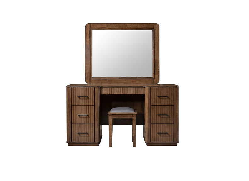 With seven drawers(middle one is hidden), the Vienna bedroom set offers a practical solution for your beautifying needs, what truly sets it apart is the meticulous craftsmanship evident in every detail with features including intricate line details, infusing an element of charm and sophistication that adds a unique character to your bedroom.