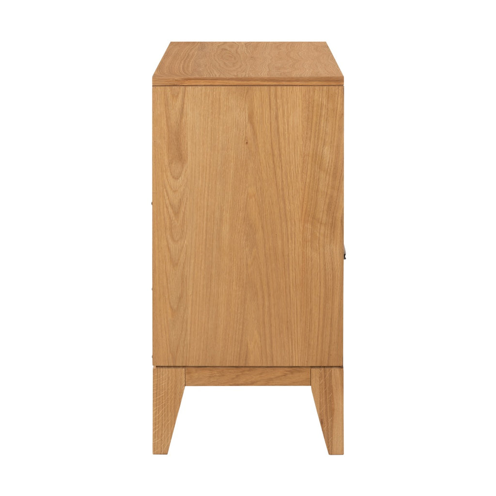 Introducing the Viento Sideboard, a captivating storage solution that seamlessly merges functionality with artistic design. This fantastic collection showcases an eye-catching starburst design crafted from Oak and Oak veneers. The meticulous hand-cut marquetry, finished in natural Oak wax, adds a touch of sophistication to your living space.
